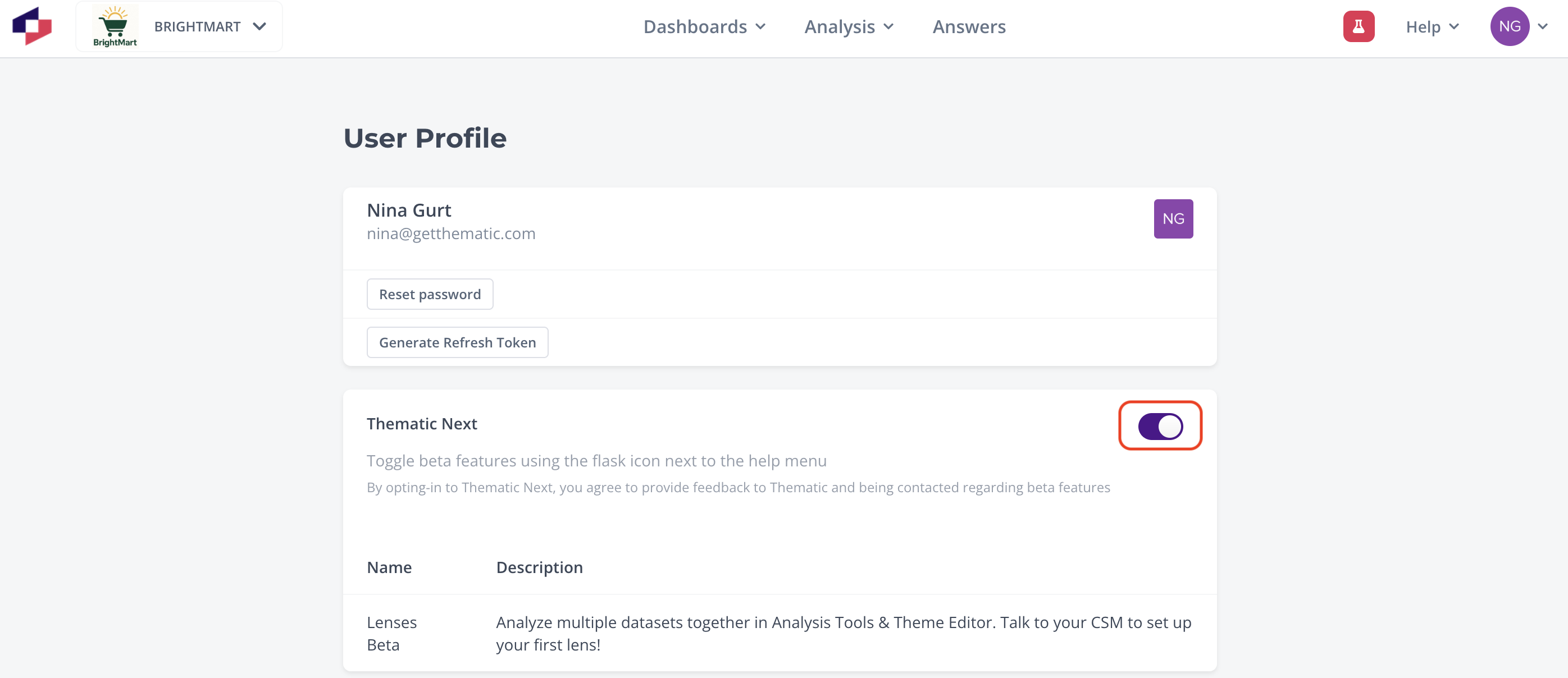 Thematic Next allows you to test new test new features before they're released.