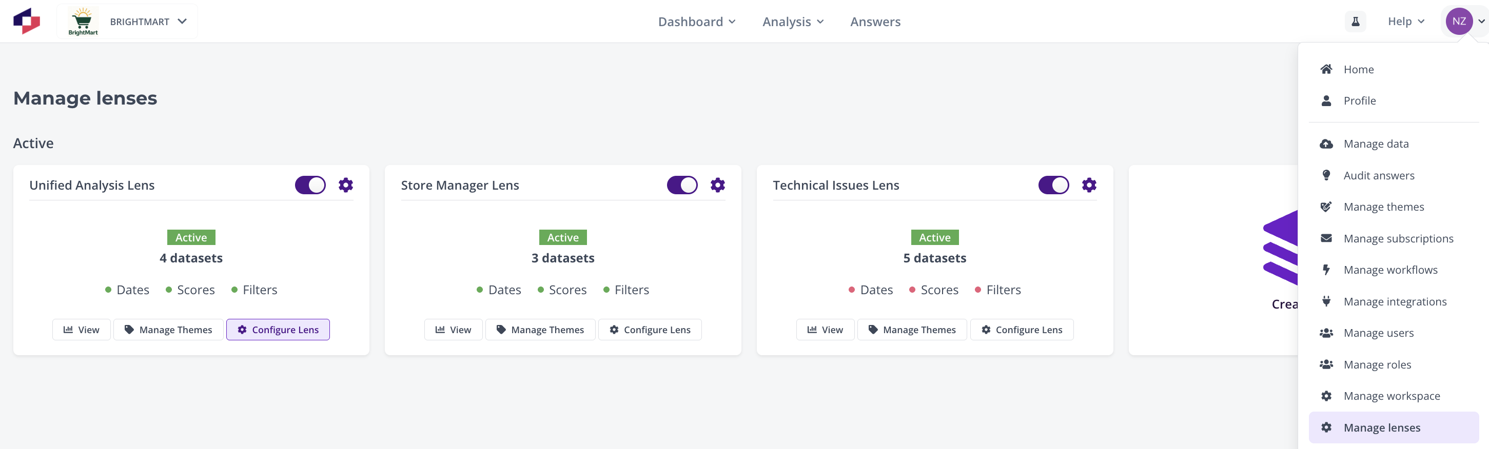 Access the Lens configuration by going to Profile > Manage lenses and then "Configure Lens" under the correct lens.