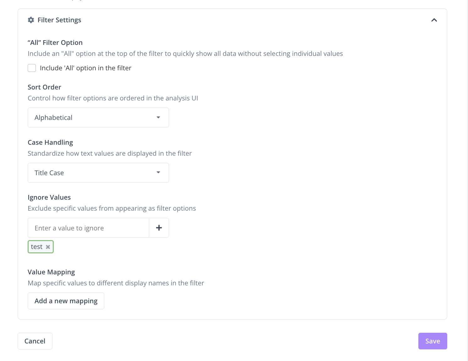 - “All” Filter Option - Useful for filters where you want to select all except a few options