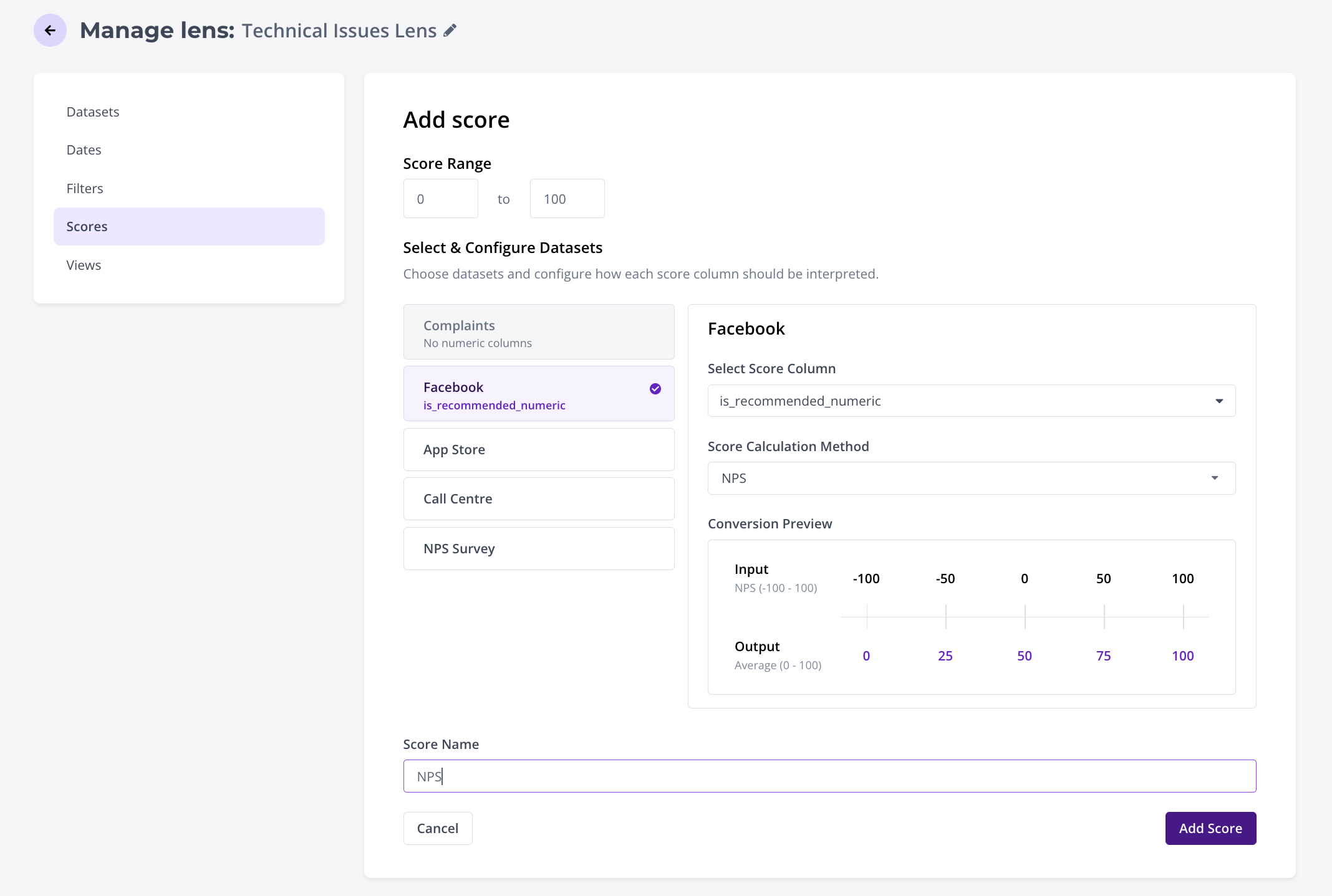 - Score range: What the total score the lens will use eg 1-5 or 0-100